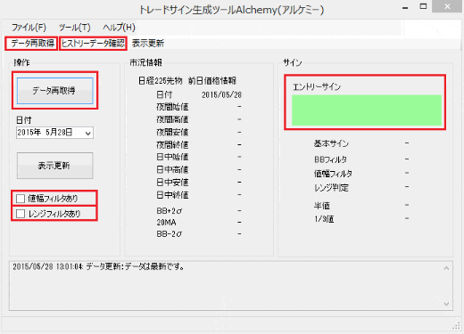 「Alchemy(アルケミー)」は、「FURAIBO225」を制作した菅原 弘二氏による日経225先物専用のトレードサイン生成ツールです。