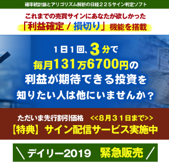 「デイリー2019」は、日経225先物システムトレード界の“雄”山本和彦氏による最新システムトレードソフトです。