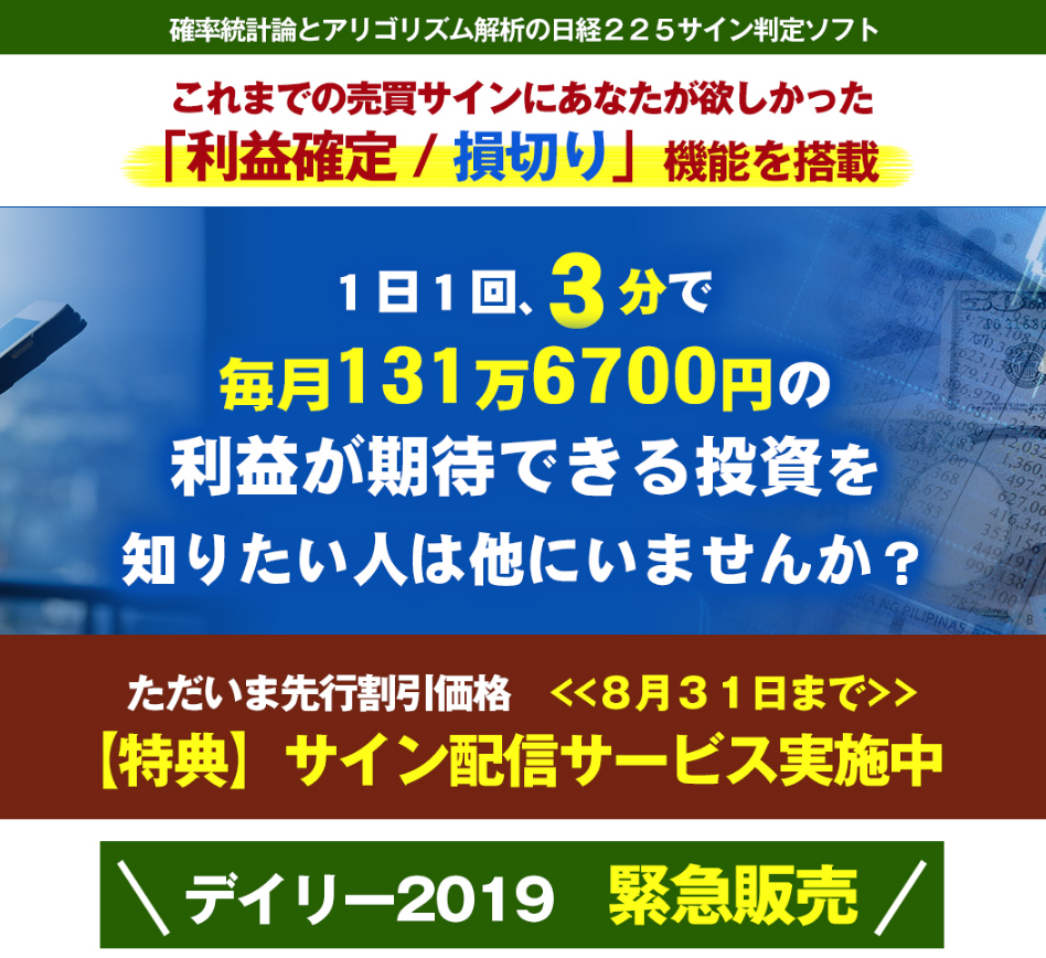 まだ投資で利益が出ていないのであれば、ぜひ「デイリー2019」を使った投資を検討してみてください。