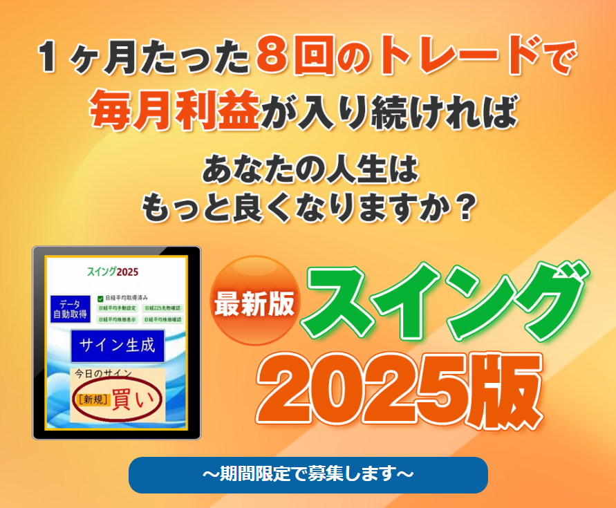 「スイング2025」と併用することで、さらに毎月の安定した利益が期待できるでしょう。