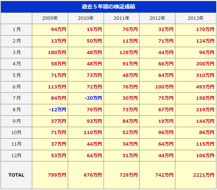 過去5年間は、月間勝率58勝2敗、5167万円の利益が出ています。