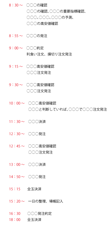 これがデイトレードライジングの一日のトレードスケジュールです。