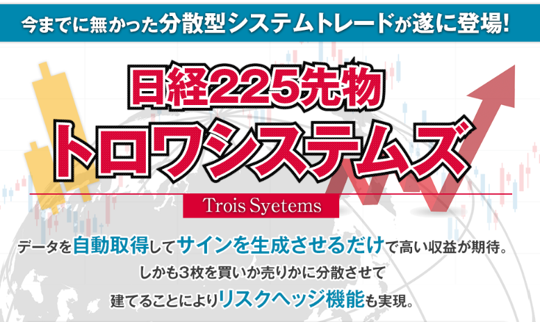 「日経225先物トロワシステムズ」は、日中3枚、夜間3枚を両建てして、リスクを極力軽減した日経225先物システムです。